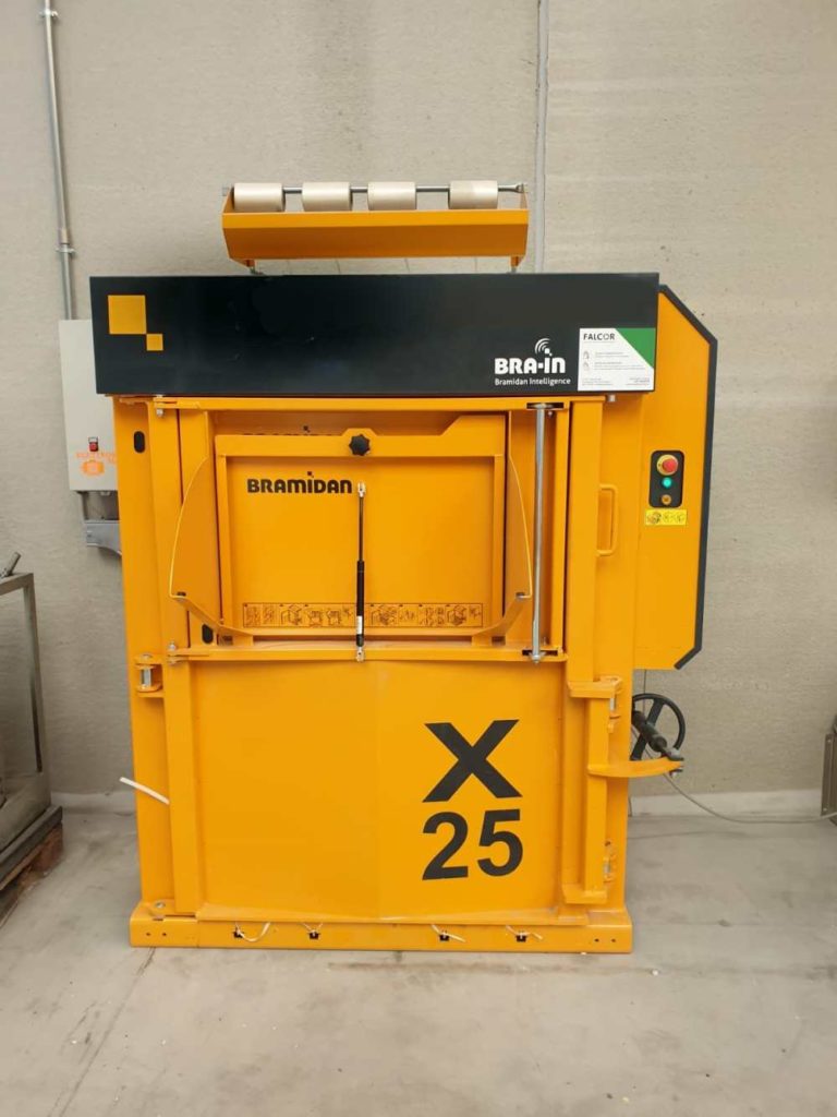 La X25 FD è una pressa di medie dimensioni, produce balle, che a seconda del materiale, vanno dai 200 ai 350 kg e ha una forza di pressione di 25 tonnellate in un tempo ciclo molto rapido. La macchina scelta da Granulati Zandobbio ha un optional particolare cioè una porta che si apre a ribalta a 45 gradi verso l’esterno, formando uno scivolo. Questo rende l’operazione di carico molto veloce. L’operatore infatti non deve far altro che appoggiare i sacchi vuoti nella porta della macchina che cadono nella camera di pressatura.