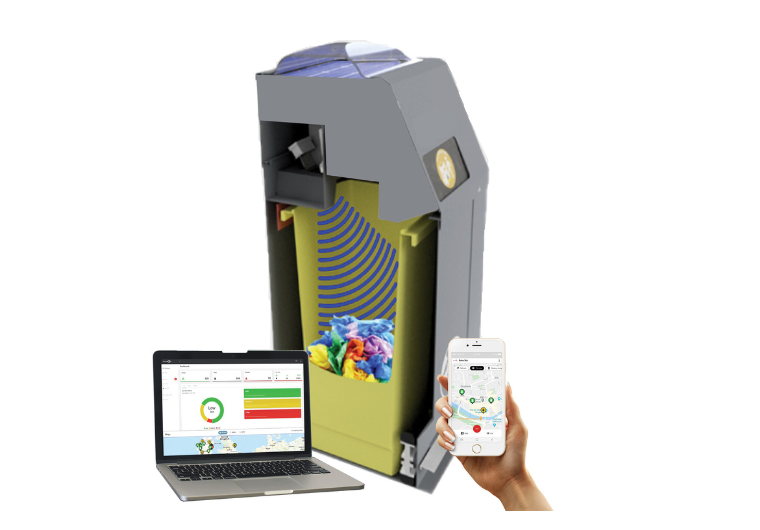Può essere combinato con un software di gestione dei dati, che consente ai raccoglitori di rifiuti e alle pubbliche amministrazioni di monitorare i livelli di riempimento in tempo reale di tutti i cestini.